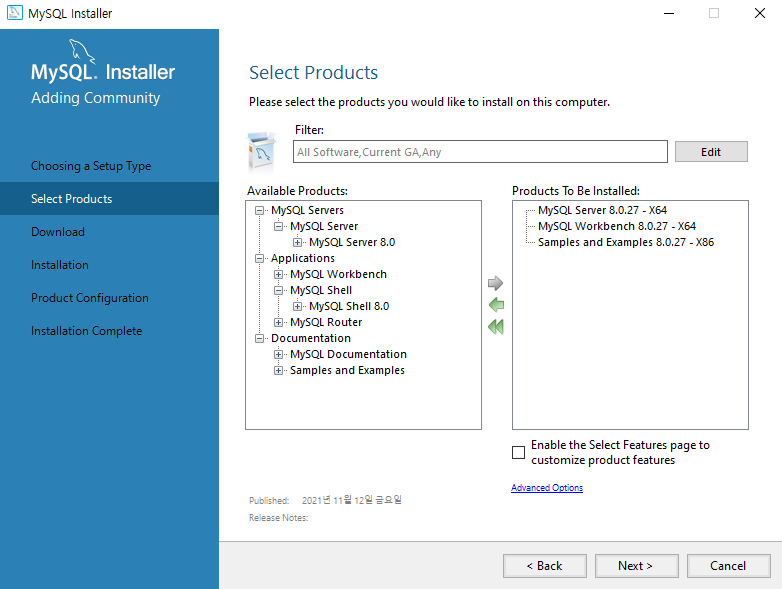 최신 버전은 버그가 발생할 수 있으므로 8.0.27버전 다운로드 및 진행