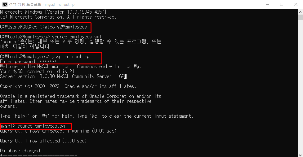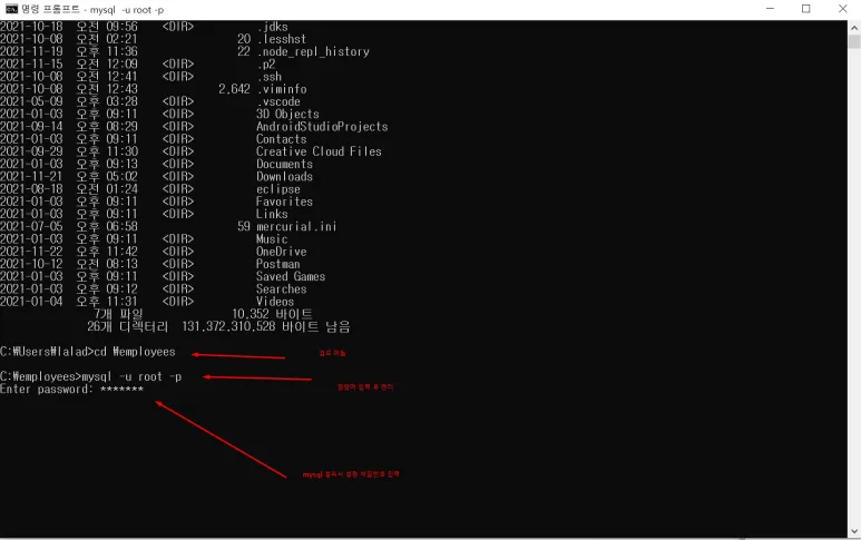 1. 프롬프트 창에서 경로를 employees 로 이동해 주세요