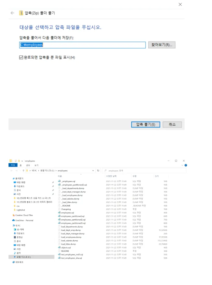 // C: 드라이버 경로로 이동 후에 생성한 employees 폴더로 이동합니다.