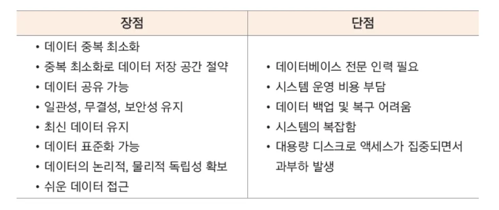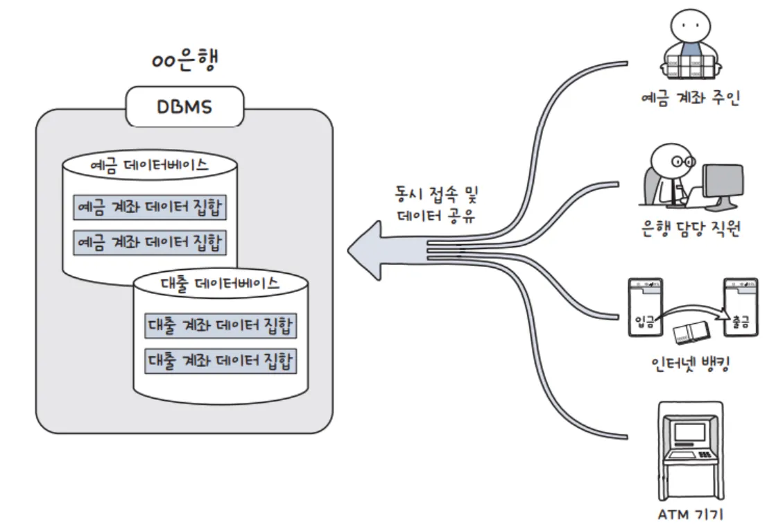 - 데이터베이스에 데이터가 저장되거나 삭제되는 모든 작업은 데이터베이스 관리 시스템을 통해야만 함
