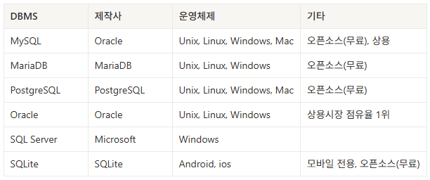 - 실무에서는 데이터베이스를 DB, 데이터베이스 관리 시스템을 DBMS라고 함