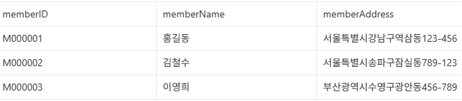 VALUES('M000003', '이영희', '부산시수영구광안동456-789');